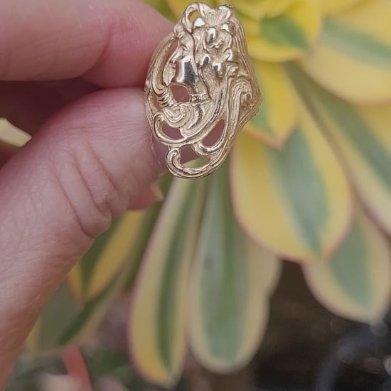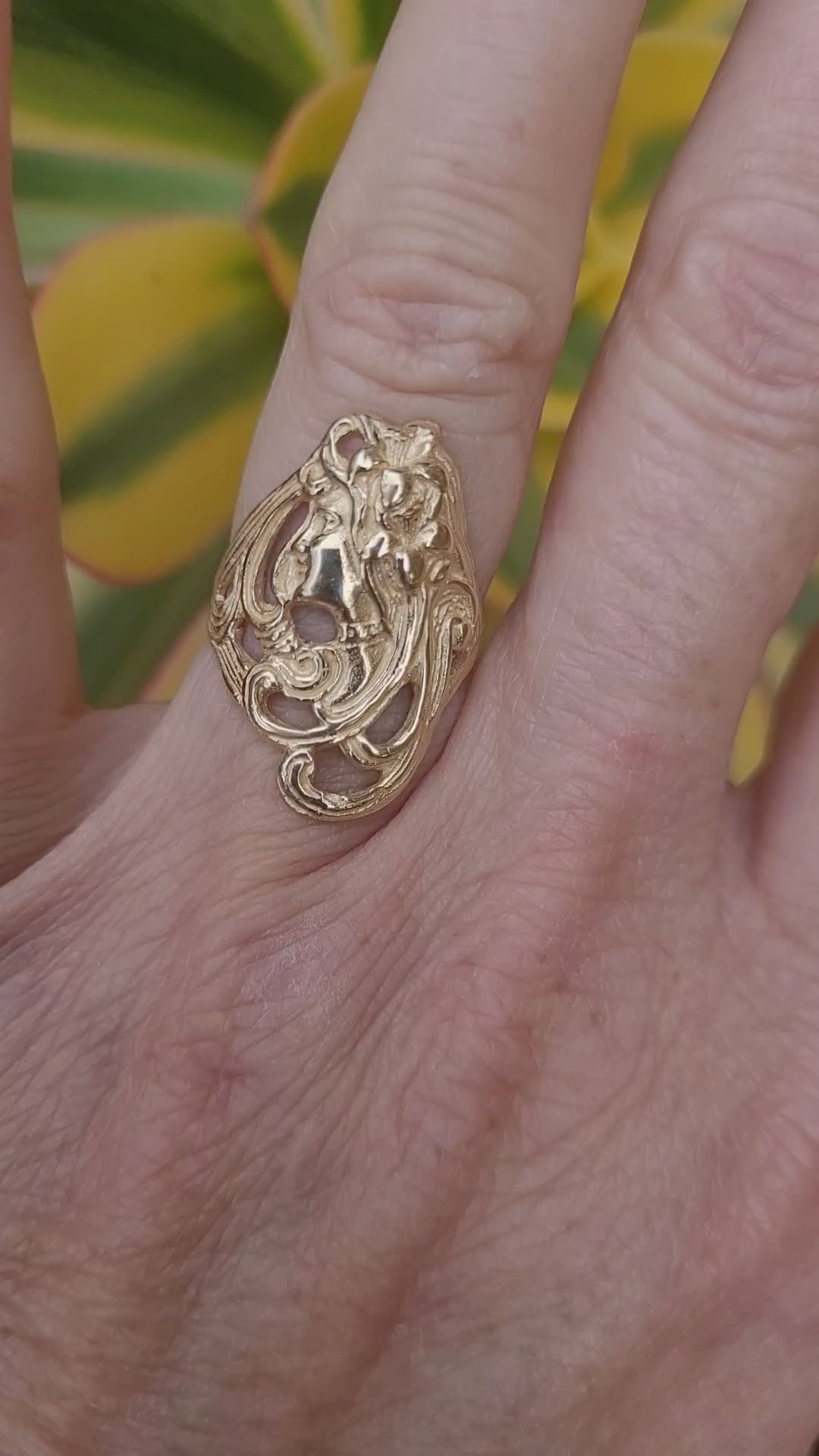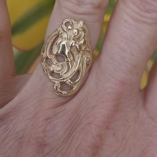 14k solid gold art nouveau woman ring. Also available in sterling silver